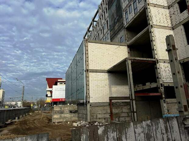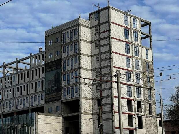 По данным Группы компаний "Базис Строй" (заказчик проекта – ООО "Ленинский, подрядчик – ООО "Первая строительная компания"), в настоящее время на стройплощадке проводят монтаж стен из газоблоков, большинство оконных проемов, в том числе и витражных на первых этажах здания, уже застеклили.