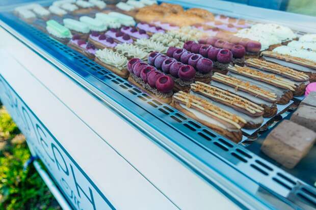 «Люди любят и едят сначала глазами. Поэтому я слежу за тем, чтобы витрина смотрелась "вкусно". Не видела, чтобы кто-то еще эклеры выставлял в таком объеме. Человек должен захотеть попробовать. А когда попробует – захочет еще», – говорит Елена.