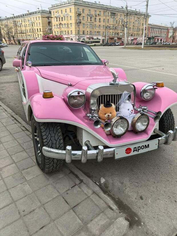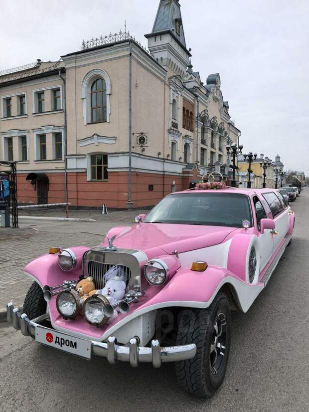 Соответствующее объявление размещено на сайте drom.ru.Полноразмерный седан представительского класса выполнен в двух цветах: верхняя часть кузова окрашена в розовый оттенок, нижняя — в белый. Машину дополнительно украсили декоративными элементами и игрушками, из-за чего она напоминает автомобиль для праздничных мероприятий или тематических фотосессий.