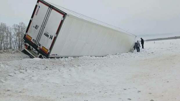 Грузовой автомобиль с полуприцепом следовал из Алматы в Новосибирскую область. По информации регионального Минтранса, в пути навстречу фуре внезапно выехал легковой автомобиль, создав аварийную ситуацию.Чтобы не допустить ДТП, водитель большегруза принял экстренное решение и съехал на обочину. В результате тягач ушел в придорожный кювет и застрял в снежном валу, из-за чего самостоятельно вернуться на проезжую часть было невозможно.