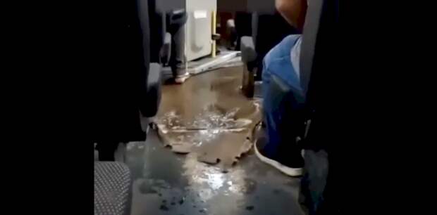 В Барнауле в одной из маршруток сняли видео, как в салоне из дыры в полу хлещет фонтан, сообщает «Чёрное и Белое Барнаул».