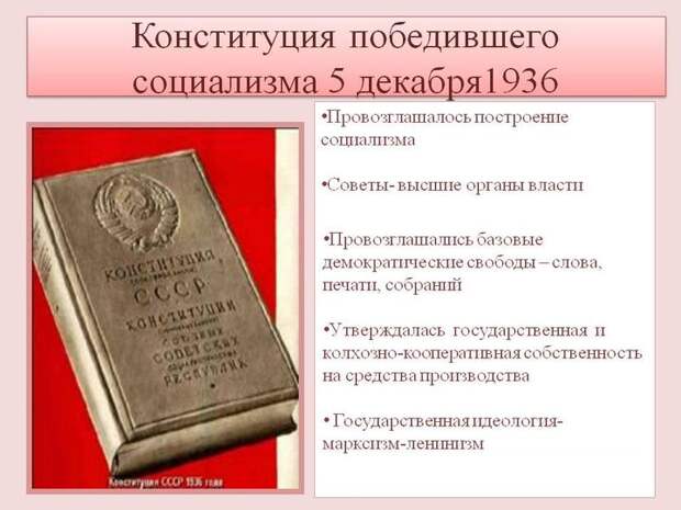 Только в "сталинской" Конституции впервые зазвучали те формулировки социально-экономических гарантий, которые всегда нами воспринимались как абсолютно слитые с социалистическим жизненным укладом: граждане СССР имеют право на труд, на отдых, на материальное обеспечение в старости и в случае потери трудоспособности – на бесплатное образование всех видов, включая высшее, на бесплатную медицинскую помощь. В таком виде она просуществовала до 1977 года, после чего в "брежневской" Конституции было закреплено определение компартии как "основной движущей и определяющей силы общества".
