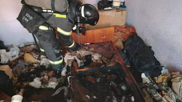 По предварительным данным, причиной возгорания стала непотушенная сигарета — окурок упал на матрас, что и привело к пожару.