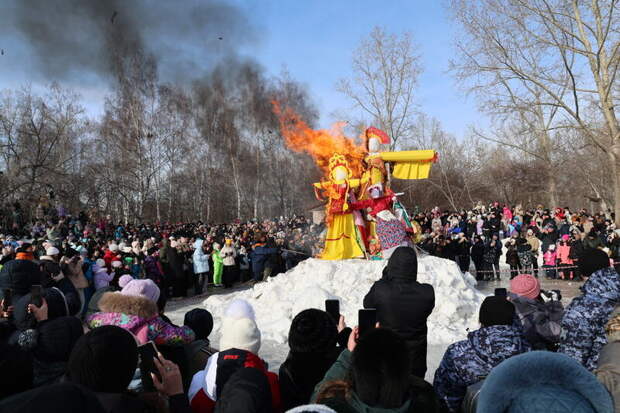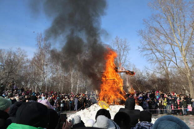 Гостей ждали чай, блины и конкурсы, а кульминацией стало сжигание чучела
