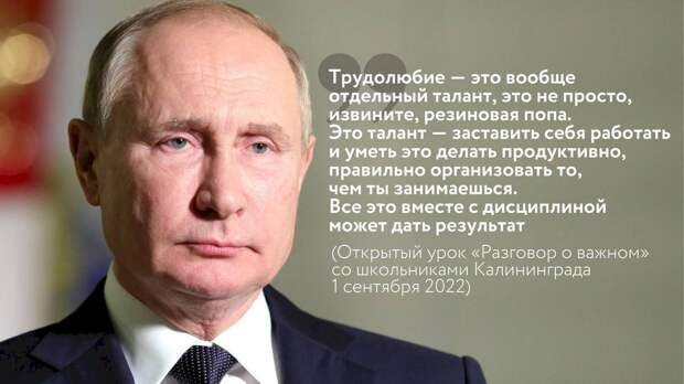 "И пусть любовь к Отечеству, всё лучшее, что есть в человеке, вдохновляет каждого из нас на поиск, на самосовершенствование для личного успеха, для работы ради своей семьи, вдохновляет на общий напряжённый труд для благополучия родной страны. Мы обязательно добьёмся успеха. Верю, так и будет. Сделаю для этого всё, что в моих силах", — сказал в инаугурационной речи в 2018 году.