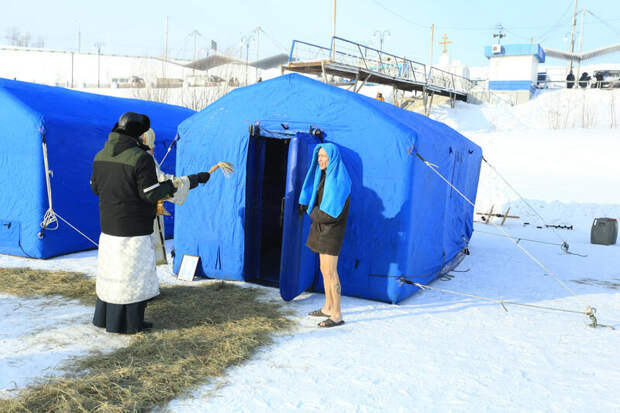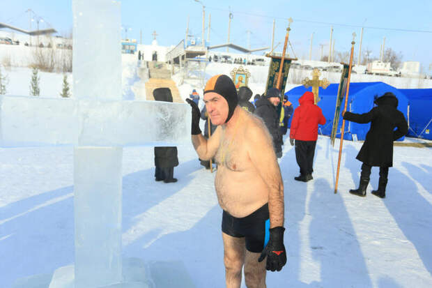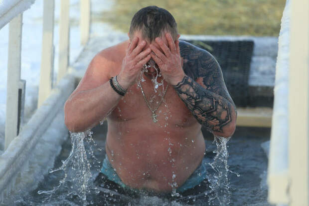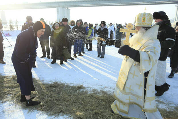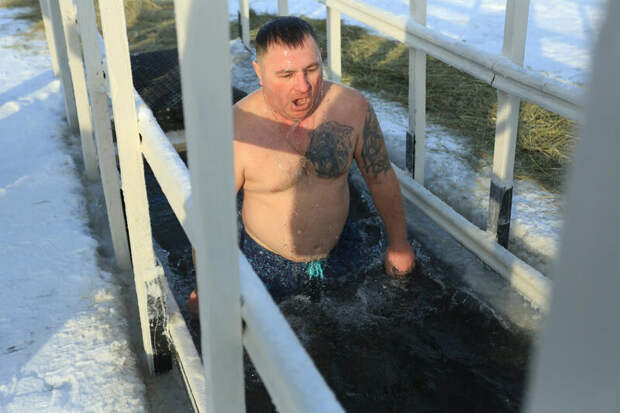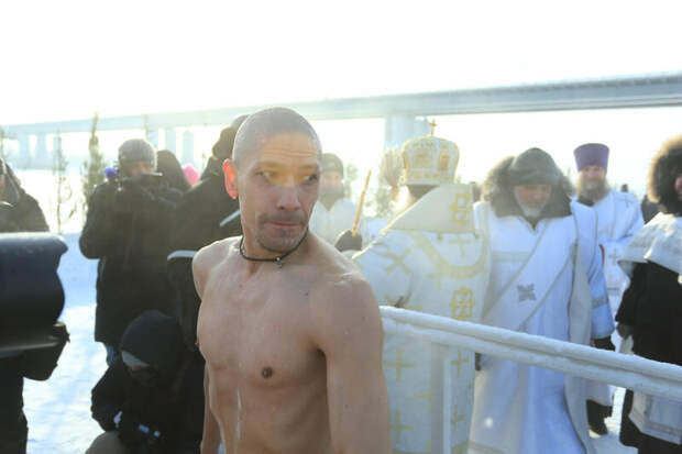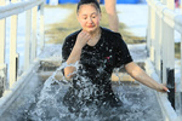 Сразу после обряда водосвятия начались крещенские омовения. В числе первых окунувшихся были барнаульские "моржи", для которых это уже устоявшаяся ежегодная традиция.