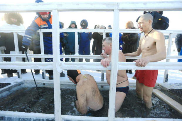 Однако, судя по количеству горожан, решивших последовать их примеру, в этом году ажиотажа не наблюдалось. Желающих искупаться оказалось значительно меньше, чем в предыдущие годы. Возможно, на посещаемости сказался тот факт, что праздник пришелся на рабочий понедельник. Отметим, что большинство первых окунувшихся – это опытные приверженцы закаливания, а многие барнаульцы предпочли в этом году поберечь здоровье и воздержаться от погружения в ледяную воду.