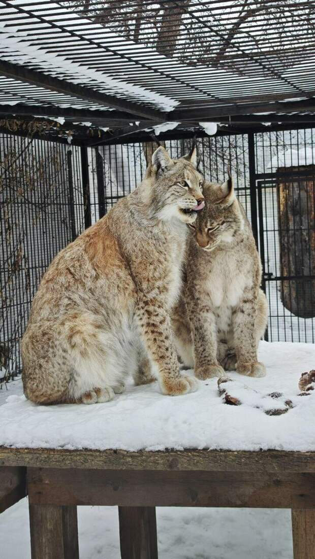 Пока в городе стоит оттепель и вместо сугробов на дорогах появляются лужи, у хищников — своя весенняя история.Пара сибирских рысей Соня и Адам в последние дни почти не расстаются. Как отмечают сотрудники зоопарка, животные активно вылизывают друг друга — и это вовсе не просто забота о шерсти. Такое поведение считается одним из ярких признаков наступления брачного периода.