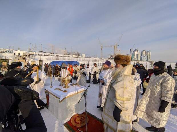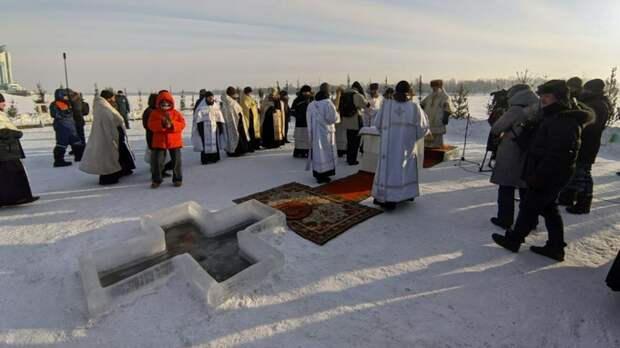 Ледяная вода Оби стала местом омовения для барнаульцев в день Крещения