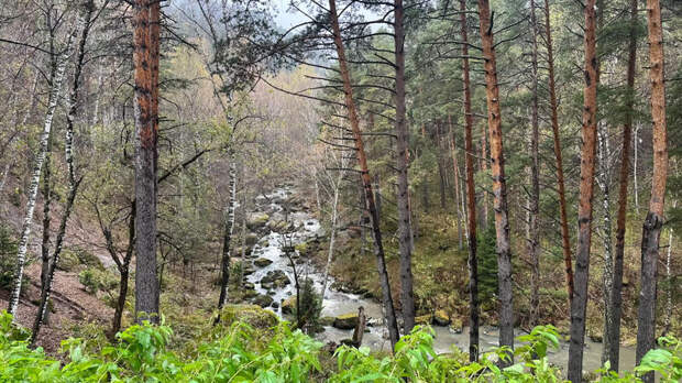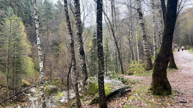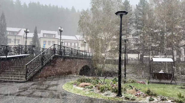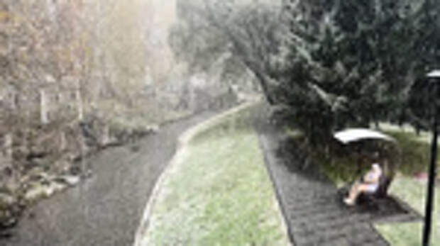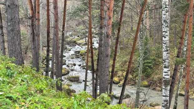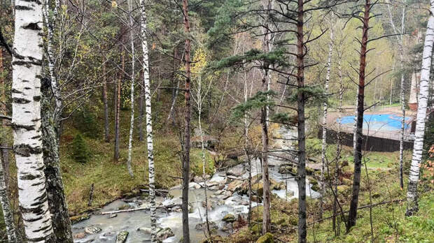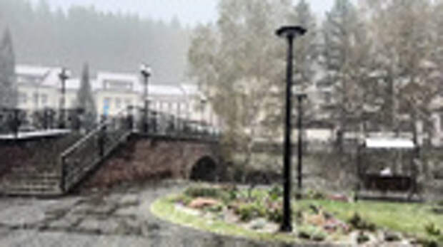 В предгорьях Алтая тоже валит снег - только сразу тает, ложась на землю. Горы уютно окутывает туман, а в воздухе чувствуется приятная влажность. Осенней желтизны здесь не так много — камни покрыты зеленым мхом, а на склонах изумрудные вне сезона сосны и ели. Осенняя Белокуриха в объективе amic.ru.
