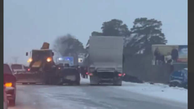 Судя по фото в соцсетях, в аварии участвовал даже снегоуборочный трактор
