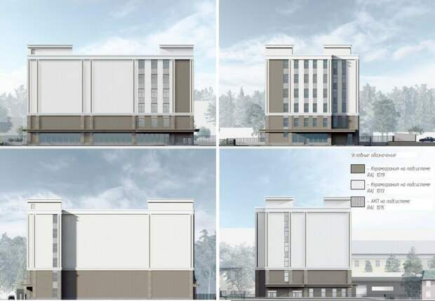 Вентиляцию вынесут на кровлю архива.Что касается архитектуры, то она будет смешанная, с элементами современного стиля и сталинской эпохи. В качестве основных цветов взяли серую и белую гамму. Наружная отделка выполнена из керамогранита на подсистеме, декоративные элементы – из алюминиевых композитных панелей, а оконные конструкции – из ПВХ-профиля, на первом этаже предполагается остекление из алюминиевого витражного профиля.
