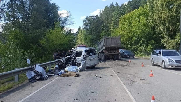 Семья из Новосибирской области ехала в Nissan Serena. По предварительным данным республиканского Следкома, водитель микроавтобуса при обгоне выехал на встречку и совершил лобовое столкновение с фурой Shacman.