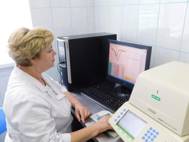 Поиск генетических поломок у раковых опухолей пациентов в лаборатории алтайского онкоцентра проводится методом ПЦР (полимеразная цепная реакция). Суть его в том, чтобы многократно скопировать (амплифицировать) молекулы нуклеиновой кислоты определенного пато-гена: если в исследуемом образце было хотя бы небольшое количество патогенных частиц, то через несколько часов их число увеличится до десятков и даже сотен миллионов. Для аппарата-анализатора они маркируются специальным флуоресцентным свечением, врач же на экране компьютера видит результат в виде графика.
