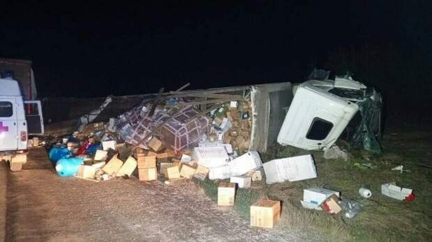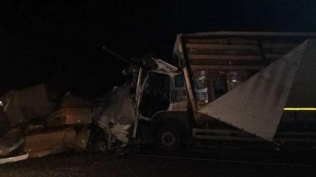 Удар оказался настолько сильным, что и большегруз, и перевозимый им груз опрокинулись